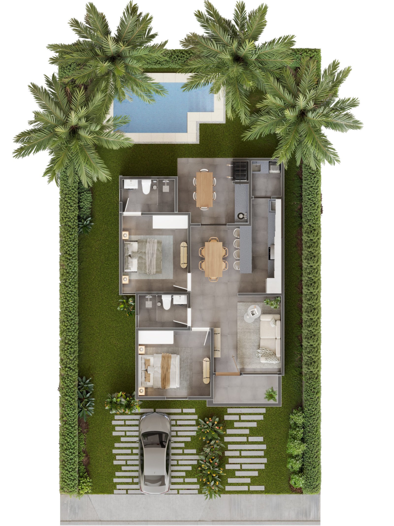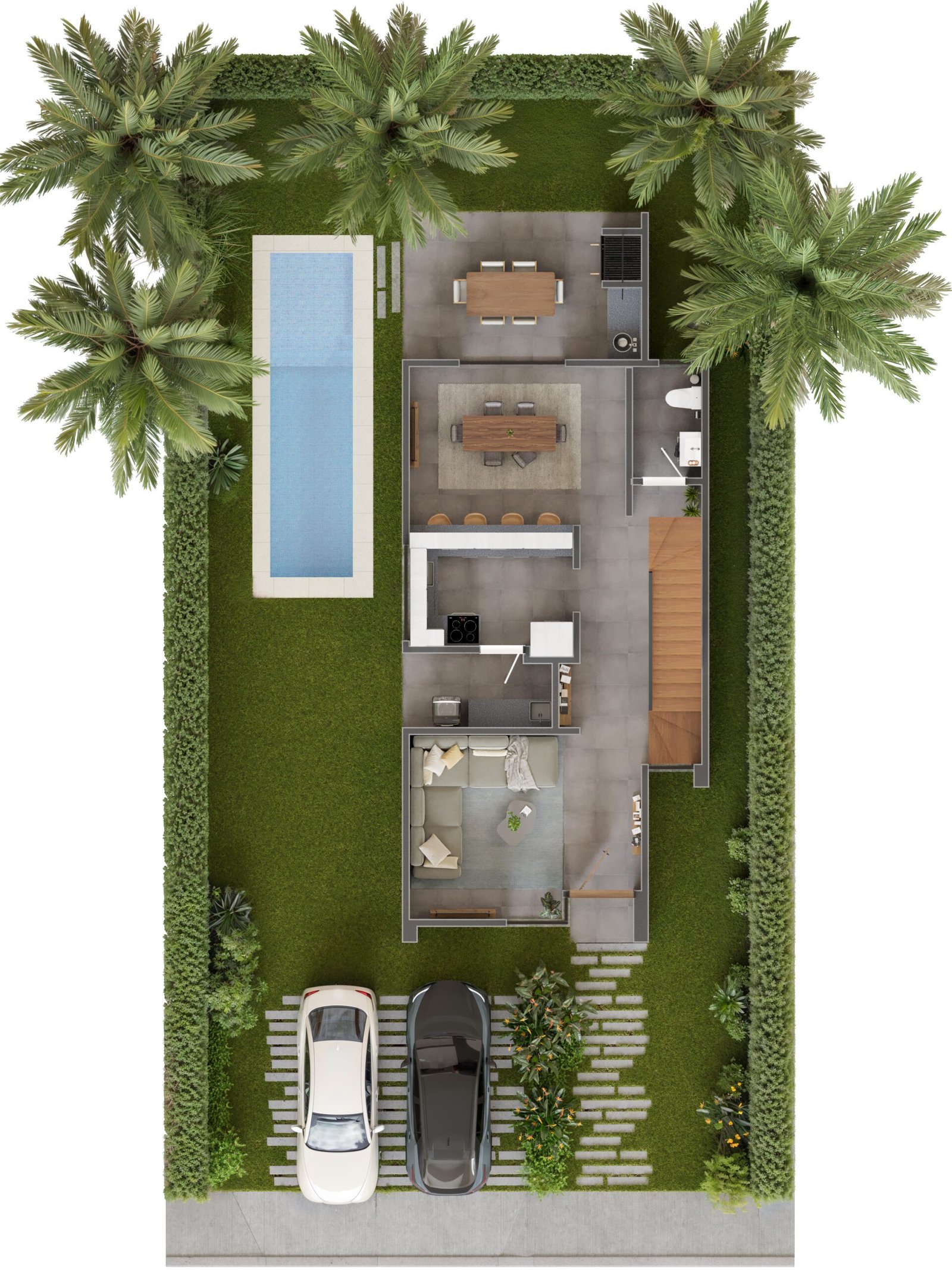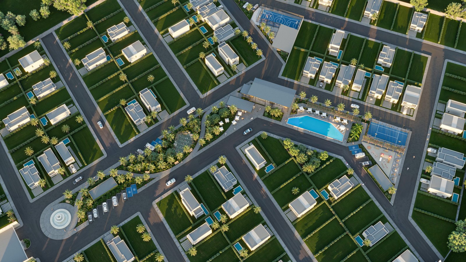 Vistas superiores realistas ideales para marketing y ventas inmobiliarias.